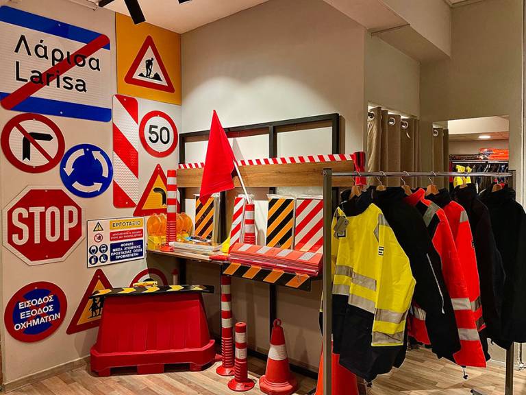 - Στα μέσα ατομικής ασφάλειας, εργοταξιακού εξοπλισμού ειδών parking και οδικής σήμανσης.