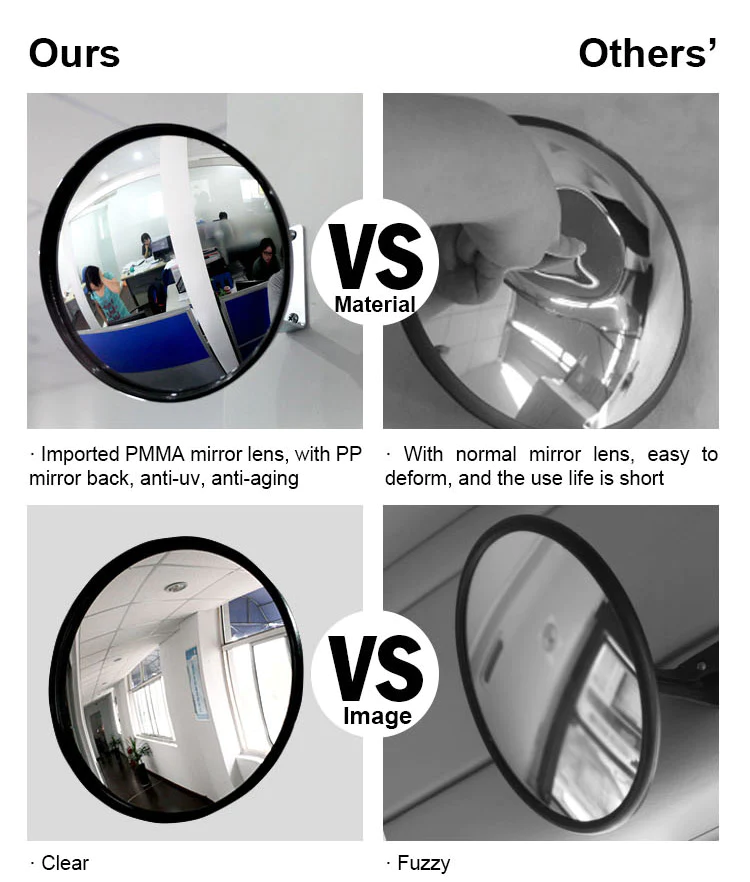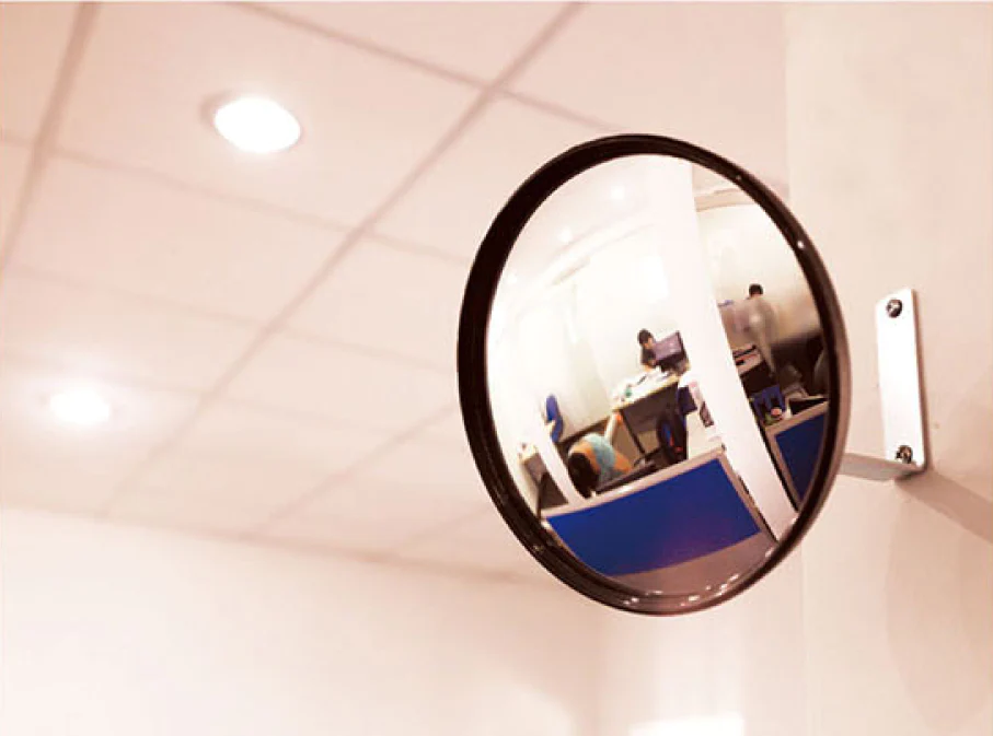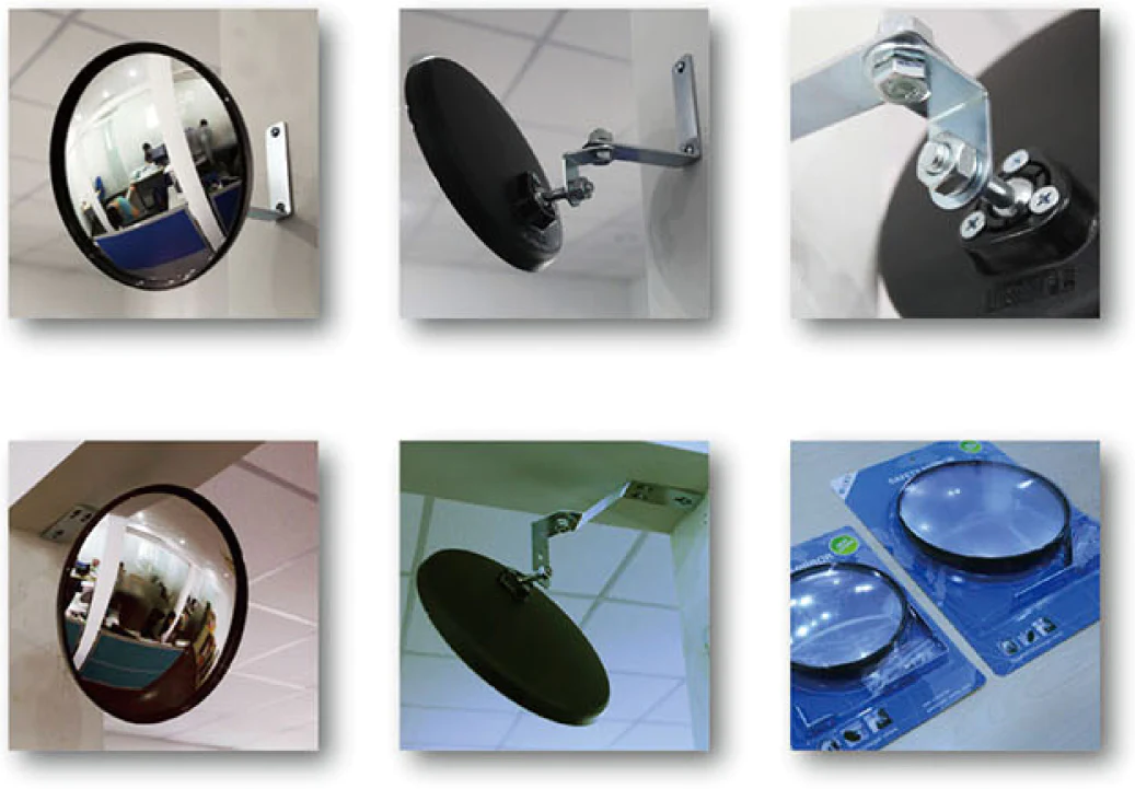Καθρέπτης ασφαλείας διαμέτρου 22cm (0.7kg) κατάλληλος για μικρούς χώρους. Διαθέτει πολλαπλά ρυθμιζόμενη βάση στήριξης για εύκολη εύρεση της επιθυμητής γωνίας και πεδίου κάλυψης του καθρέφτη. Χρησιμοποιείται κυρίως σε εσωτερικούς χώρους.